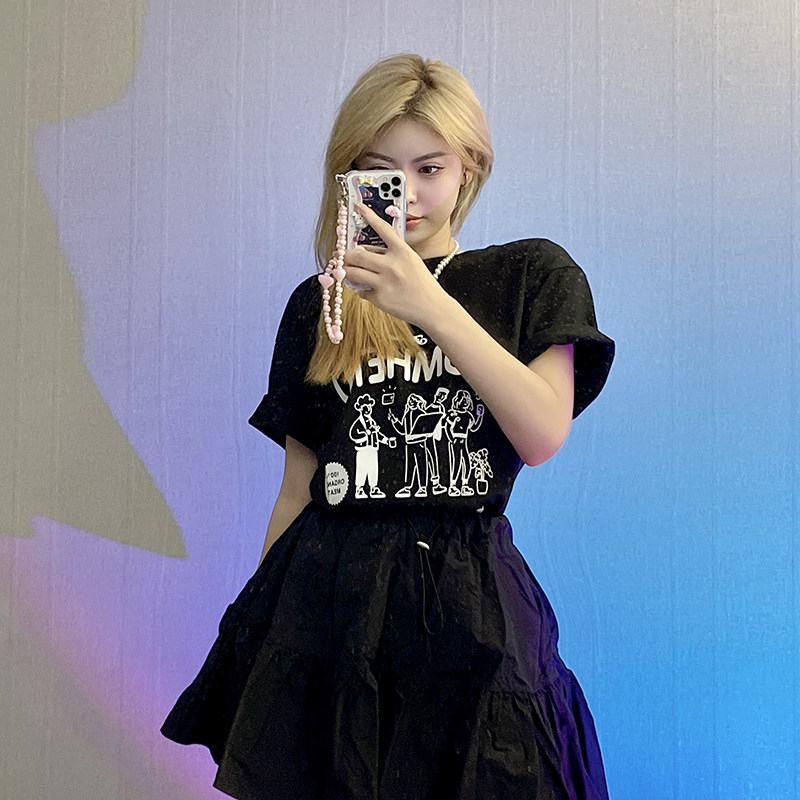 250G日系复古卡通印花女T美式重磅小圆领棉t恤吸汗不透光宽松热门设计联盟服务商