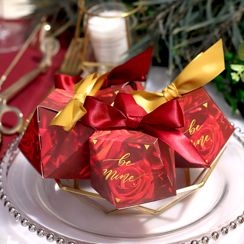喜糖盒 红色复古喜糖盒 蝴蝶结钻石型 原创设计 喜糖纸盒热门设计联盟服务商